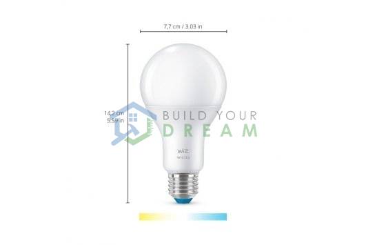 Becul inteligent WiZ A67, cu flux luminos ridicat, oferă orice nuanță de lumină albă caldă sau rece pentru instalațiile standard din locuința dumneavoastră. Utilizați aplicația WiZ sau vocea pentru a diminua și crește intensitatea luminoasă sau utilizați modurile de lumină presetate pe configurațiile Wi-Fi.
