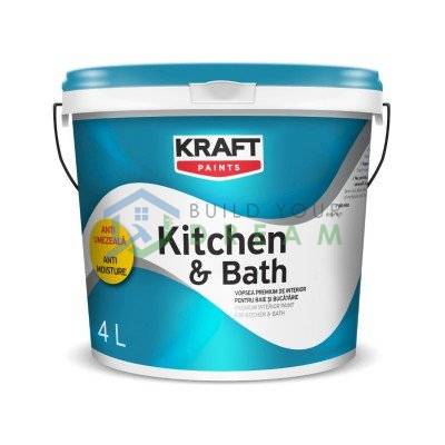 ● protejează pereții expuși la umiditate ● rezistență bună la umezeală ● lavabilitate foarte bună ● randament: cca. 10 m2/L/strat KRAFT Kitchen & Bathroom este o vopsea lavabilă mată protectoare, pe bază de latex, pentru pentru baie şi bucătărie. Se aplică uşor, se usucă repede, are proprietăţi antimucegai şi este recomandată pentru medii umede.Oferă protecţie completă împotriva mucegaiului. |