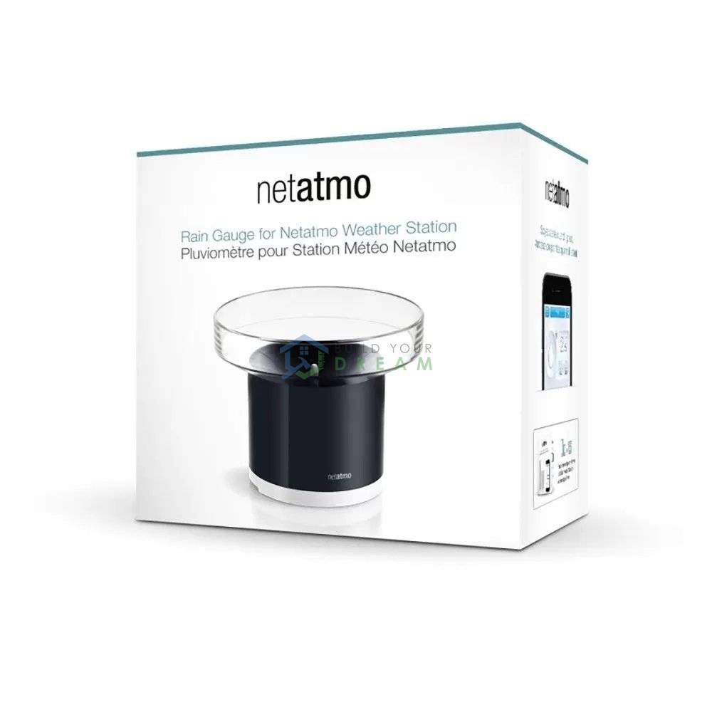 Pluviometrul inteligent Netatmo WiFi măsoară cu precizie nivelul precipitațiilor, cuprins între 0.2 mm/h și 150 mm/h, având o acuratețe de 1 mm/h. Modulul este complet rezistent la intemperii, iar distanța maximă între pluviometru și modulul interior al stației meteo nu trebuie să depășească 100 metri, fără obstacole. Acesta funcționează doar împreună cu stația meteo Netatmo.