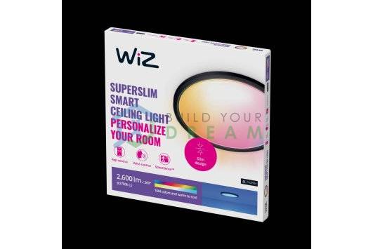 Plafoniera LED RGB inteligenta WiZ SuperSlim, Wi-Fi, 22W, 2600lm, lumina alba (2200-6500K) si RGB, Neagra, |