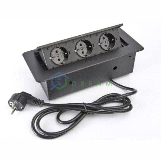Priza Dreptunghiulara 3 posturi incastrabila cablu 2m |