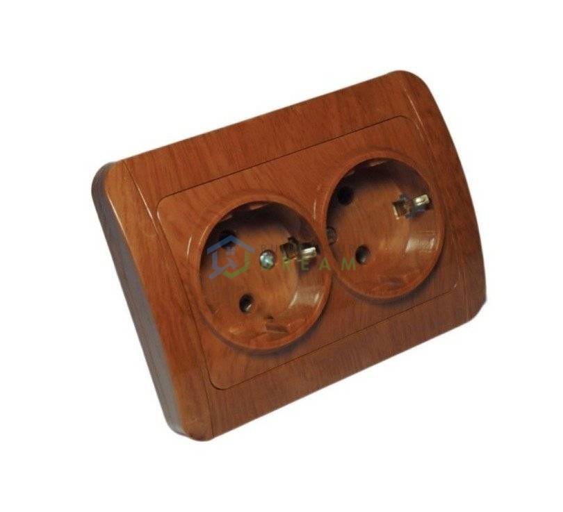 Priză dublă cu contact de protecție, mahon, montaj încastrat |