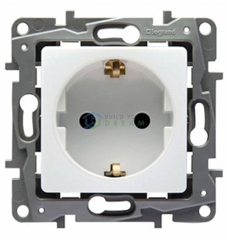 Priza Schuko 2P+T simpla, utilizata pentru conectarea diverselor aparate electrice la reteaua electrica, ce face parte din gama Niloe Legrand.