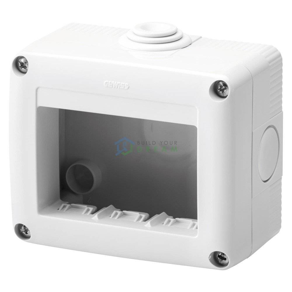 Doza de legatura tip cadru, din plastic Gewiss, patrata, cu 3 module. Produsul este realizat dintr-un material ignifugat si se foloseste pentru conexiunile electrice din instalatii rezidentiale si industriale, cu respectarea standard-ului IP40. Montarea produsului se realizeaza aparent (pe tencuiala).