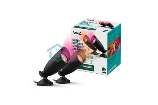 Starter kit de baza spoturi inteligente de exterior WiZ Connected, negre, 2x4W, 450lm, lumina alba si colorata 2700-5000 (RGB), IP65, |