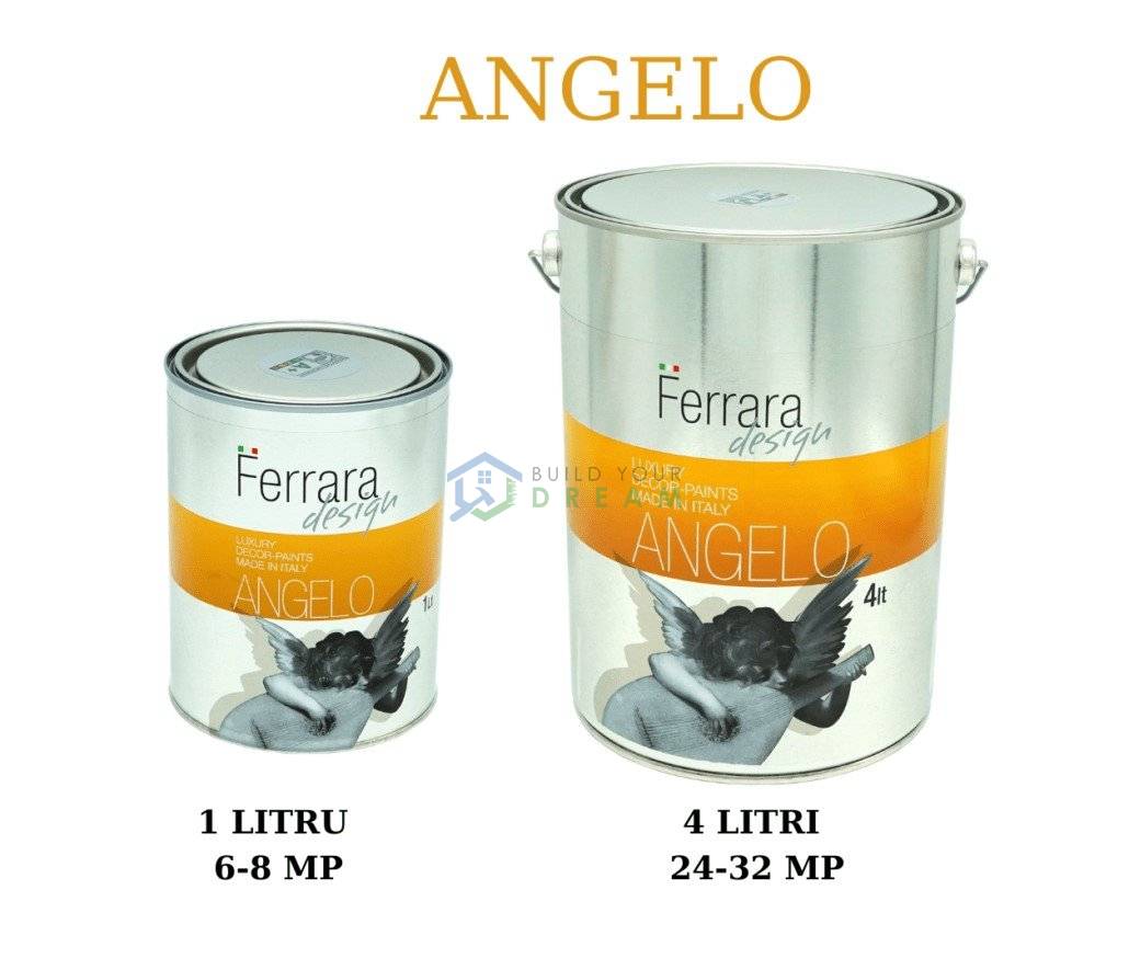 Vopsea decorativa Angelo, Ferrara Design, culoare argintie, pe baza de apa, pentru interior |